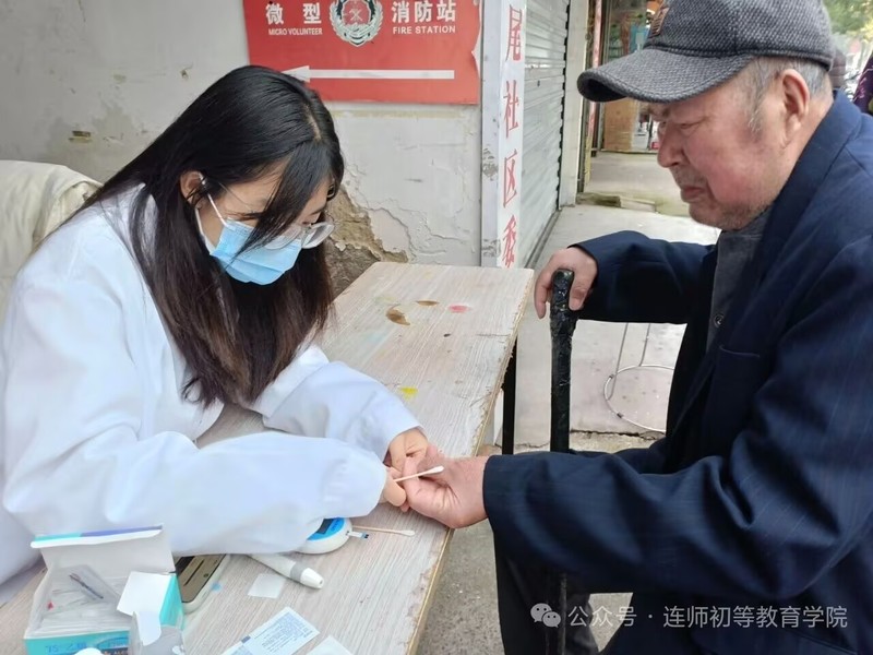 为大力弘扬中华民族孝亲敬老的传统美德,初等教育学院营养社团于11月1日在龙尾社区开展了活动,本次活动以重阳敬老传统为核心,聚焦社区老人健康需求,通过免费检测血糖、血压,助力老人掌握基础健康指标、干预老年慢性病风险;同时搭建社区与老人沟通桥梁,普及健康管理知识,践行孝亲文化,增强老人获得感与幸福感。