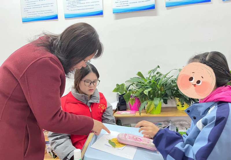 近日,连云港市馨康宝贝融合园内暖意融融,一场以 “薪火相传,护航成长”为主题的志愿服务活动温馨启幕。初等教育学院党总支书记吉广萍带领5位关工委成员走进融合园,与14位志愿者共同通过树叶贴画创作与填图涂色等趣味活动,为特殊儿童搭建起表达自我、感受美好的艺术桥梁。