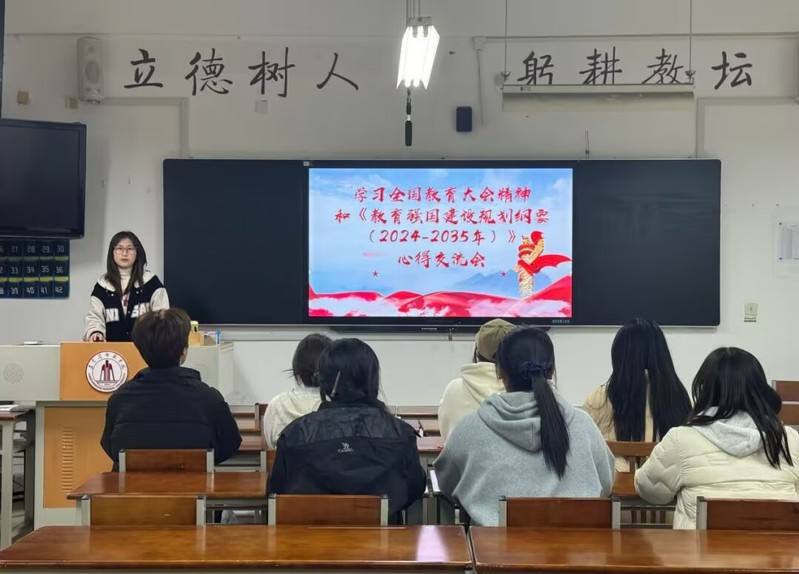 在《教育强国建设规划纲要(2024-2035)》学习环节,同学们重点研读了总体目标和重点任务,围绕“到2035年建成教育强国”的宏伟蓝图展开深入探讨。大家一致认为,作为未来的人民教师,要主动对接国家战略需求,夯实专业基础,提升育人能力,努力成为高素质专业化教师队伍中的一员。与会学生代表在分享心得时表示,要以实际行动践行“为党育人、为国育才”的初心使命。