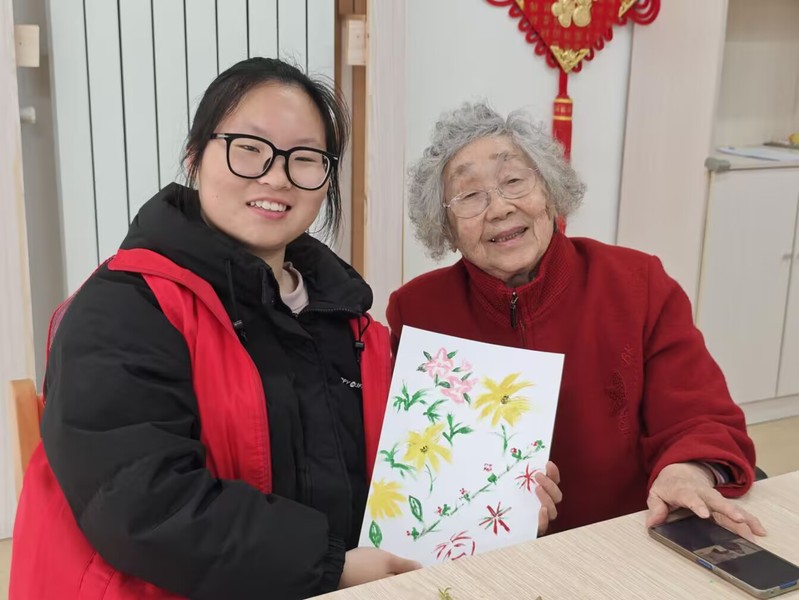 3 月 22 日,初等教育学院学生党支部组织志愿者团队走进连云港市社会福利中心,开展“以爱相伴,点亮银龄”主题志愿服务活动。志愿者们以画笔为媒,与老人们携手绘春,在融融春日里为福利中心的老人们送上暖心关怀。