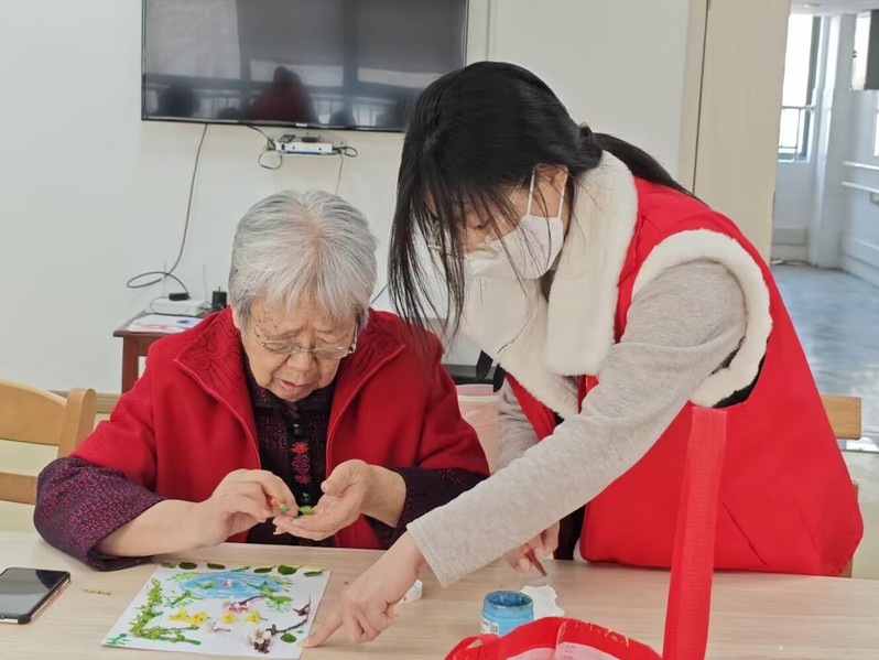 3 月 22 日,初等教育学院学生党支部组织志愿者团队走进连云港市社会福利中心,开展“以爱相伴,点亮银龄”主题志愿服务活动。志愿者们以画笔为媒,与老人们携手绘春,在融融春日里为福利中心的老人们送上暖心关怀。
