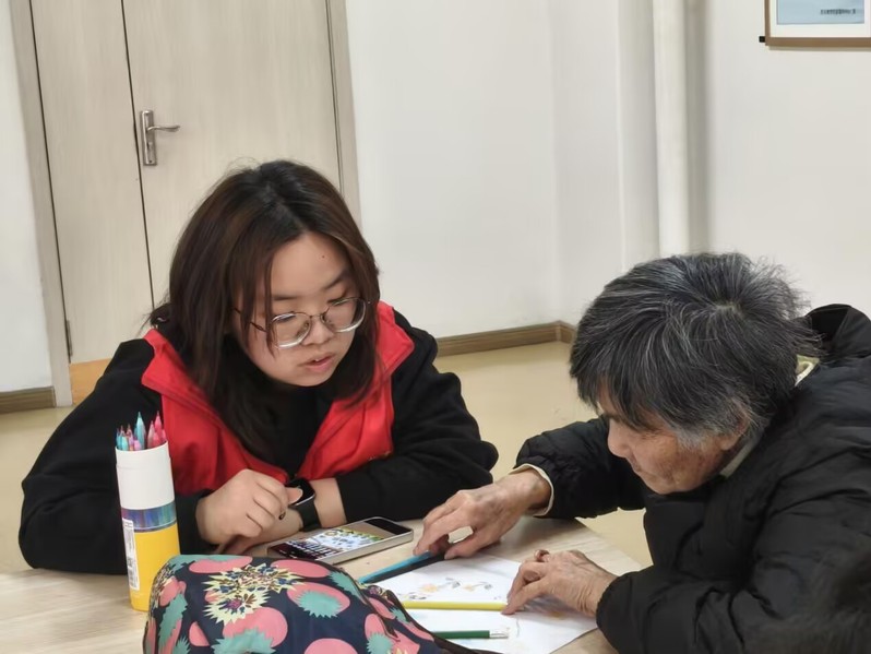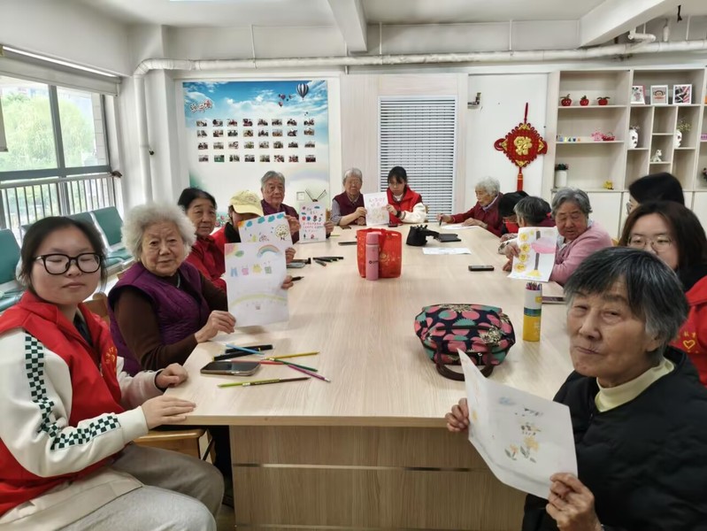 活动现场暖意融融,志愿者们围坐在老人身边,认真聆听老人们讲述过去的劳动经历。老人们用质朴的语言,分享着属于他们的劳动故事与时代记忆,志愿者们也在倾听中感悟着劳动的价值与奋斗的意义。在“共绘劳动瞬间”环节,志愿者与老人们结对携手,提笔作画,共同描绘与劳动相关的场景。老人们笔下,是记忆里的农具、熟悉的劳作场景;志愿者们则以年轻人的视角,描绘青年奋斗、新时代劳动的鲜活图景。一笔一画间,老人们重温了劳动的美好回忆,志愿者们也在创作中感悟到劳动的幸福和奋斗的力量,现场充满了欢声笑语。
